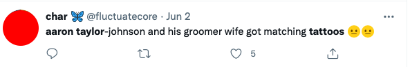 “Aaron Taylor-Johnson e a esposa predadora fizeram tatuagens combinando”, se decepcionou uma terceira.