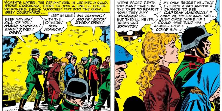 Enquanto no cinema ela é membro da Reserva Científica Estratégica e inglesa, suas origens dos quadrinhos são diferentes. Em sua introdução na Marvel Comics, ela é na verdade uma líder de um movimento clandestino de franceses que lutam contra os nazistas. O Capitão América a encontra lá e se apaixona por sua bravura e liderança. Mais tarde, ela é capturada pelos nazistas e o Capitão América a salva.