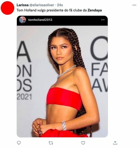 Além de Zendaya, Tom Holland fez menção na publicação ao estilista Law Roach. Os fãs do casal de Homem-Aranha ficaram com inveja.